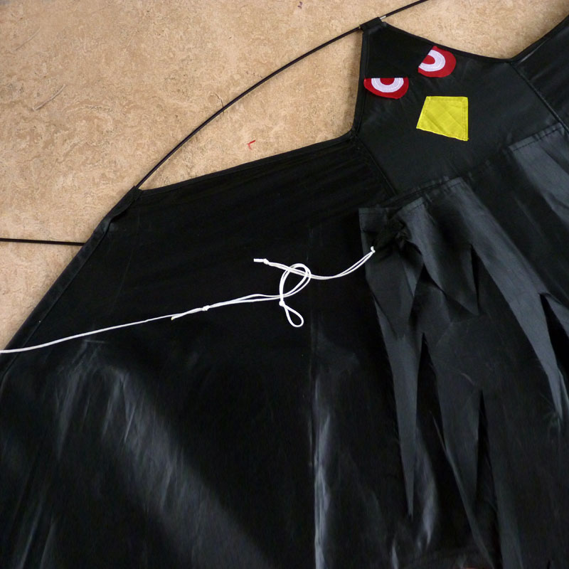 Blacky Hawk levereras med ett linfäste på ”benen”. Om man fäster en lina där så flyger den som en vanlig drake.