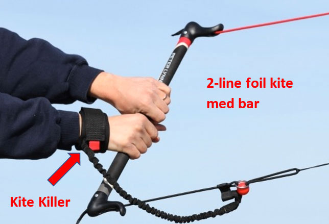 Med kite killern fästad runt hanleden och när vinden plötsligt tilltar och blir för hård kan du bara släppa baren och kiten faller bara mjukt till marken. Dessutom är den R2F = Ready to fly! allting är färdigmonterat och noga uttänkt för att den ska vara så säker och bekväm som möjligt och så slipper du trassel på linorna!
